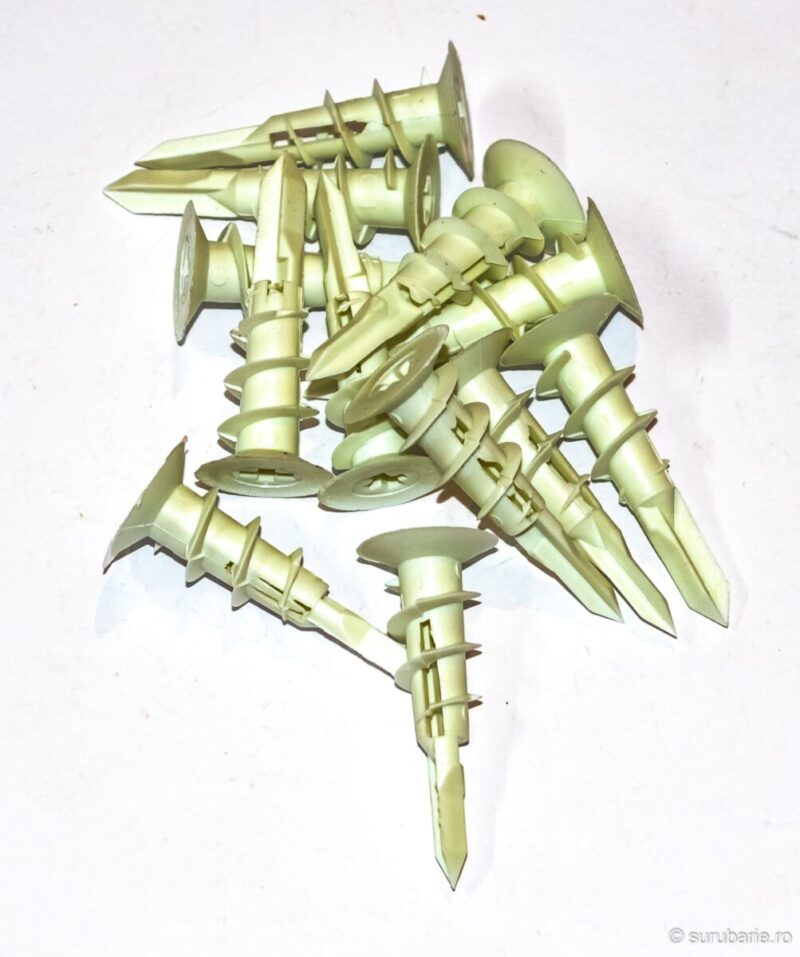 - Fixare fermă: Designul tip melc permite înșurubarea rapidă și o ancorare solidă în plăcile de rigips.