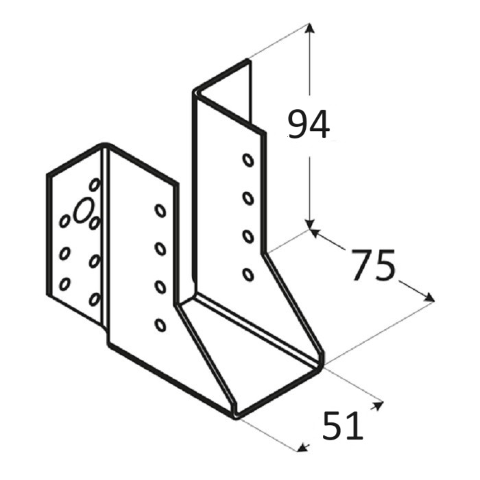 Conector metalic heavy-duty pentru susținerea grinzilor cu lățimea de 51 mm în planșee,