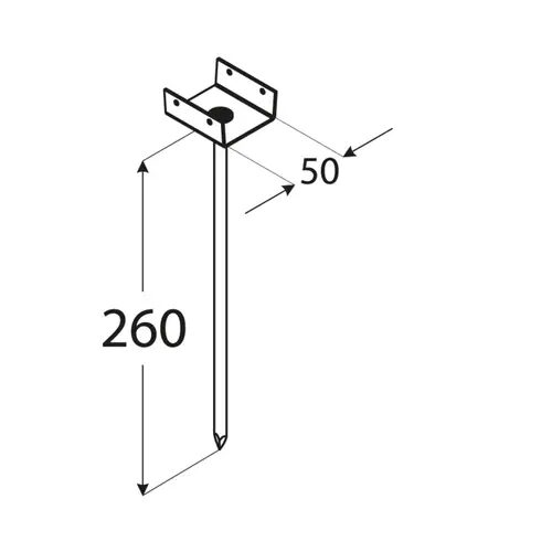 - Dimensiuni constructive: 50x55x260x1,5 mm (lățime U × înălțime urechi × lungime tijă × grosime tablă).