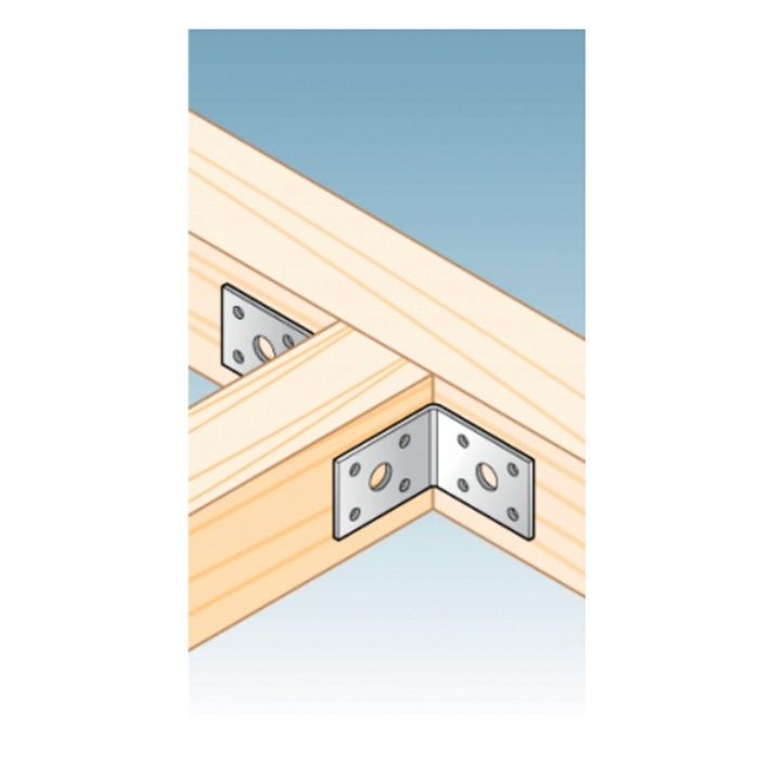 Conector unghiular 90° pentru îmbinări din lemn/PAL, potrivit ca prindere principală sau de întărire la mobilier, rame și structuri ușoare. Fabricat din oțel DX51D cu protecție Z275MAC, oferă rigiditate și rezistență anticorozivă pentru utilizări interioare sau semi-exterioare.