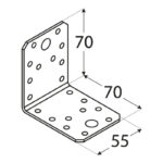 Set 20/buc Colțar Lemn 70×70×55×2.5 mm KL2 – oțel zincat, găuri Ø5 mm + gaură Ø11.8 mm