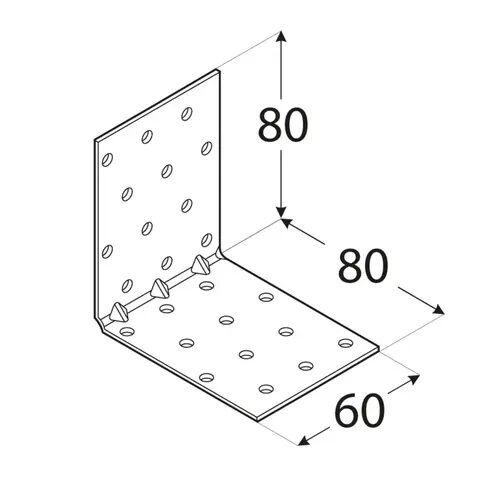 Colțar metalic ranforsat pentru îmbinări la 90° în structuri din lemn, PAL sau OSB. Aripile late 80 × 80 mm oferă contact extins, iar baza de 60 mm permite o prindere stabilă. Nervurile embosate cresc considerabil rigiditatea față de un colțar plat. Protecție anticorozivă prin zincare Z275. Pachet: 20 bucăți.