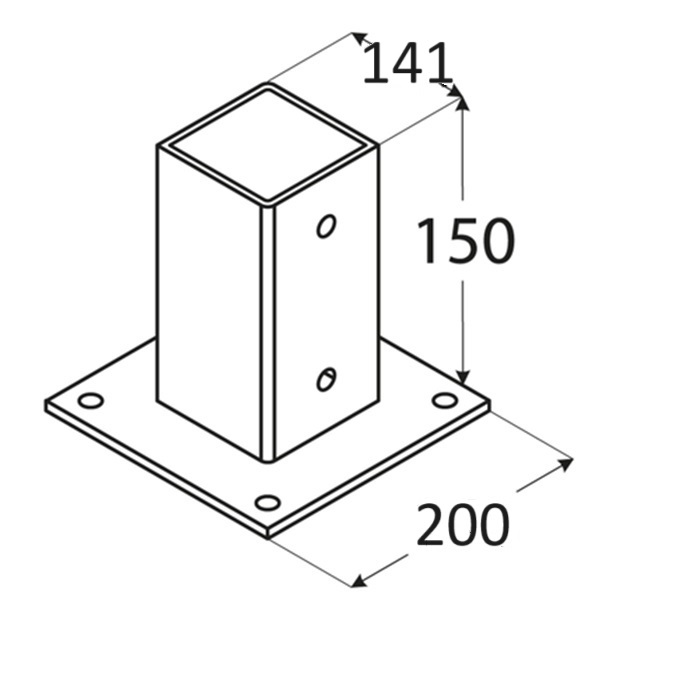 Suport Stalp Lemn Patrat PSP140 – 141 × 141 mm, oțel zincat 2.5 mm