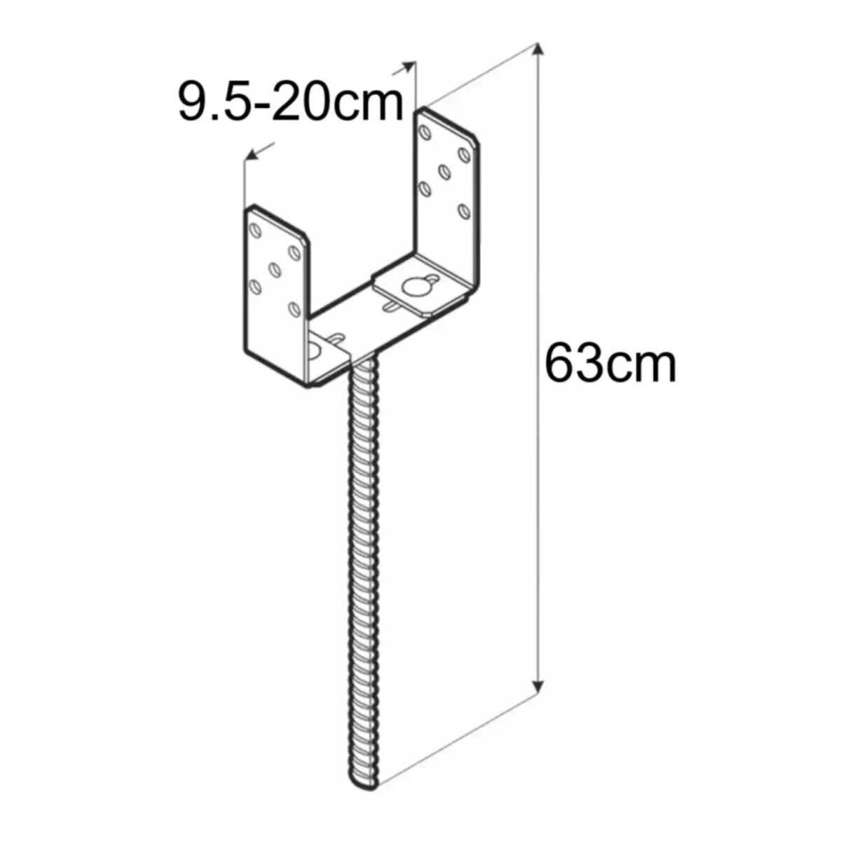 Suport Stâlp Reglabil cu Tijă Lungă PSRU 60-200 – U reglabil 0–200 mm, oțel zincat la cald