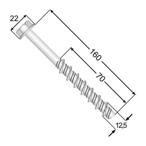 Surub pentru beton 12.5×160 mm cu cap hexagonal, tip ancora surub, destinat pentru fixari directe in beton fara diblu. Realizat din otel zincat, ofera durabilitate, rezistenta mecanica si protectie anticoroziva in utilizare curenta pe santier.