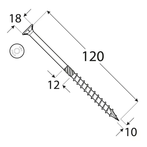 Detalii tehnice Suruburi Dulgherie Cap Inecat 10×120 mm: