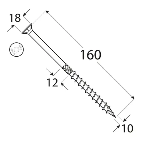 Detalii tehnice Suruburi Dulgherie Cap Inecat 10×160 mm: