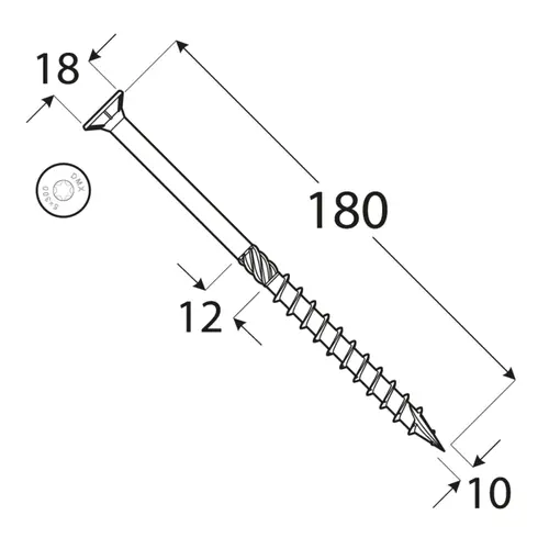 Detalii tehnice Suruburi Dulgherie Cap Inecat 10×180 mm: