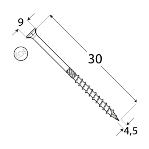 Detalii tehnice Suruburi Dulgherie Cap Inecat 4.5×30 mm: