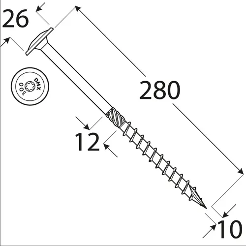 Detalii tehnice Suruburi Dulgherie Cap Plat 10×280 mm: